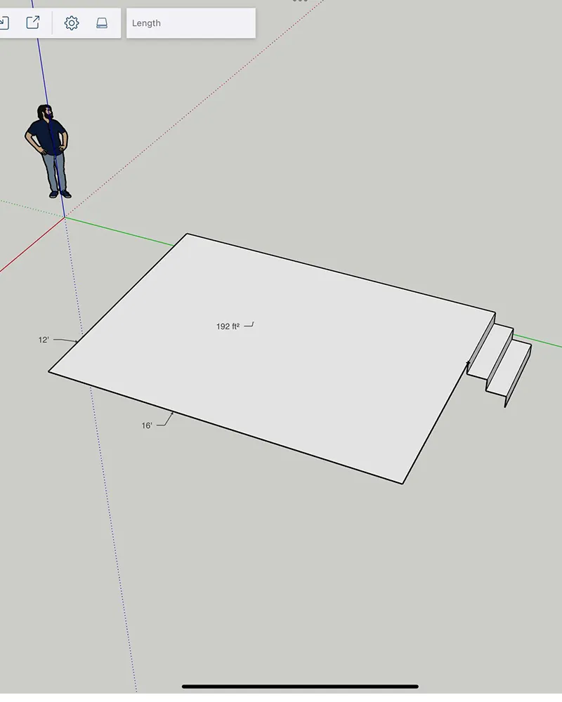We had to use 192 sq. ft. of framing material. For both ledger board and framing, we used 2’x10′ lumber 12″ on-center. This is the most cost-efficient framing material, and our go-to for all deck building projects.