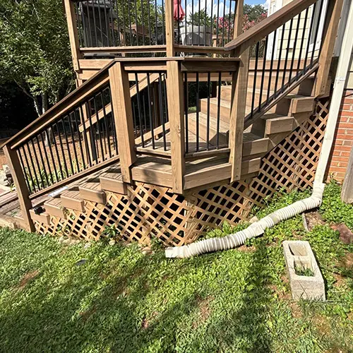 The old deck integrated a slope, with a downspout extension placed right next to the lattice skirting. These were another sources of moisture damage.