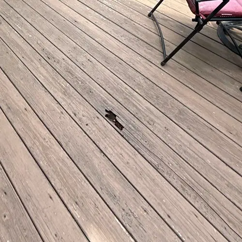 The once-beautiful wood deck Linda and her spouse enjoyed had become a safety hazard.