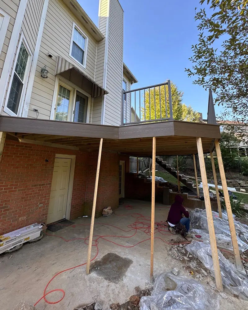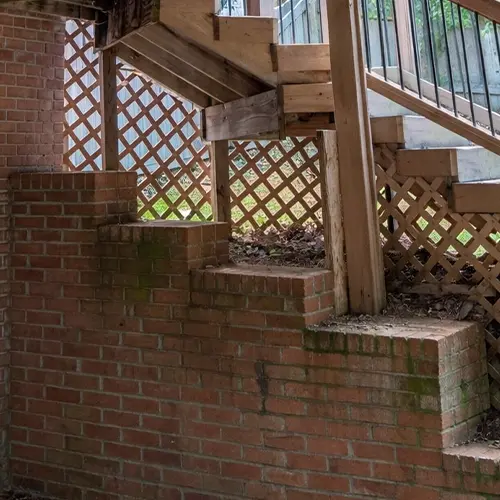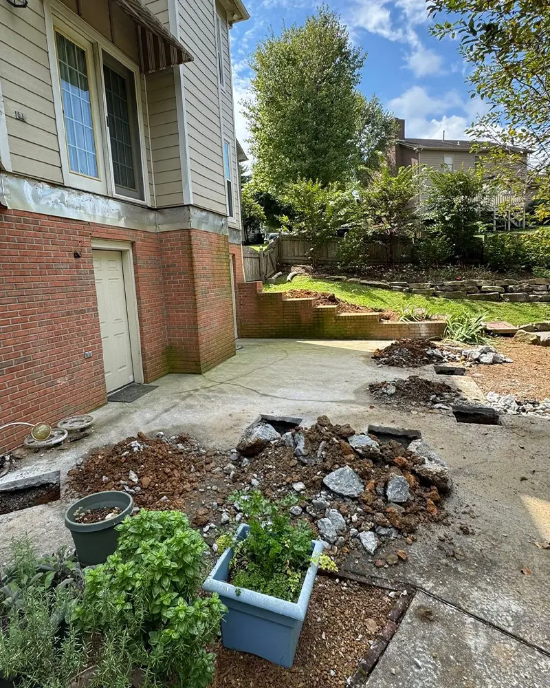 After removing the old deck, we leveled out the slope on the stairway side and the segmented brick wall for better airflow and moisture management.