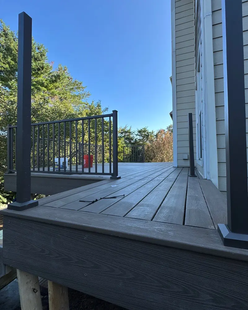 We installed 120 sq. ft. of composite decking, perfect for our clients to enjoy a low-maintenance deck. It’s durable, resistant to water or UV damage, and you can walk on barefoot because it stays cold and splinter-free.